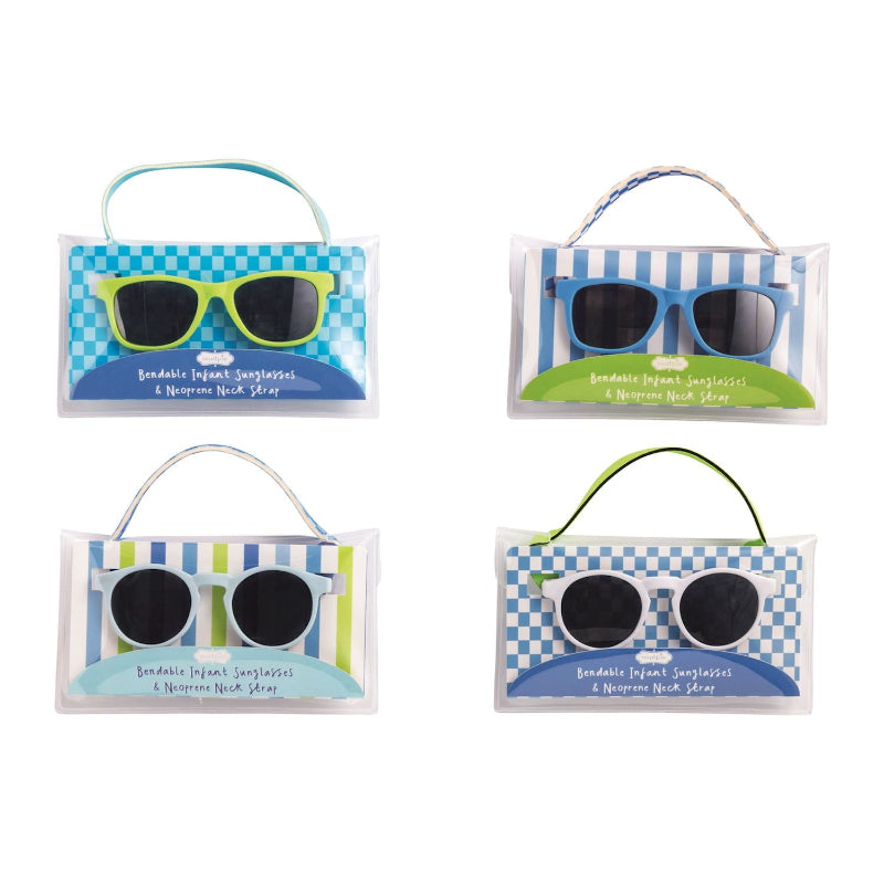 Bendable UV400 infant sunglasses with removable neoprene strap.