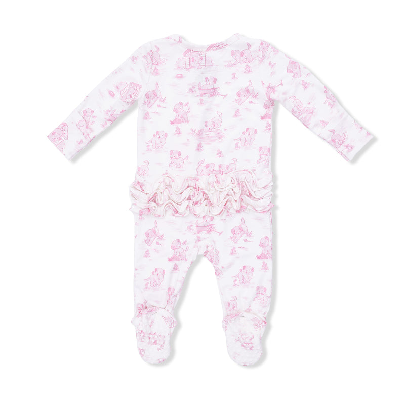 Puppy Toile Pink Two-Way Ruffle Back Zipper Footie by Angel Dear