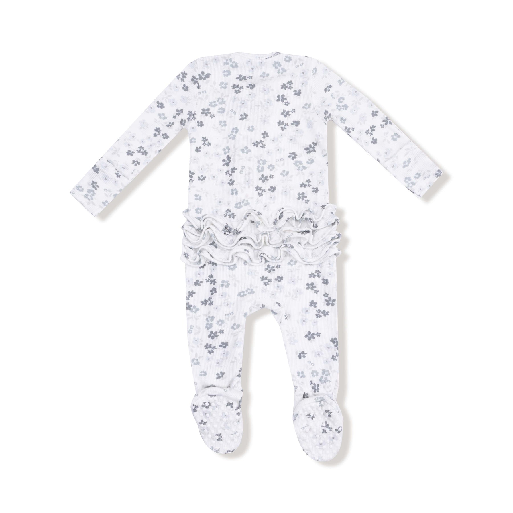 Caroline's Calico Ribbed Two-Way Ruffle Back Zipper Footie by Angel Dear