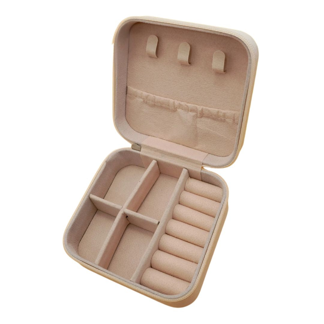 Jewelry Organizer Travel Box Case, the ultimate solution for keeping your jewelry safe, organized, and tangle-free while on the go. It features three necklace hooks, ring slots, and adjustable slots for added organization.