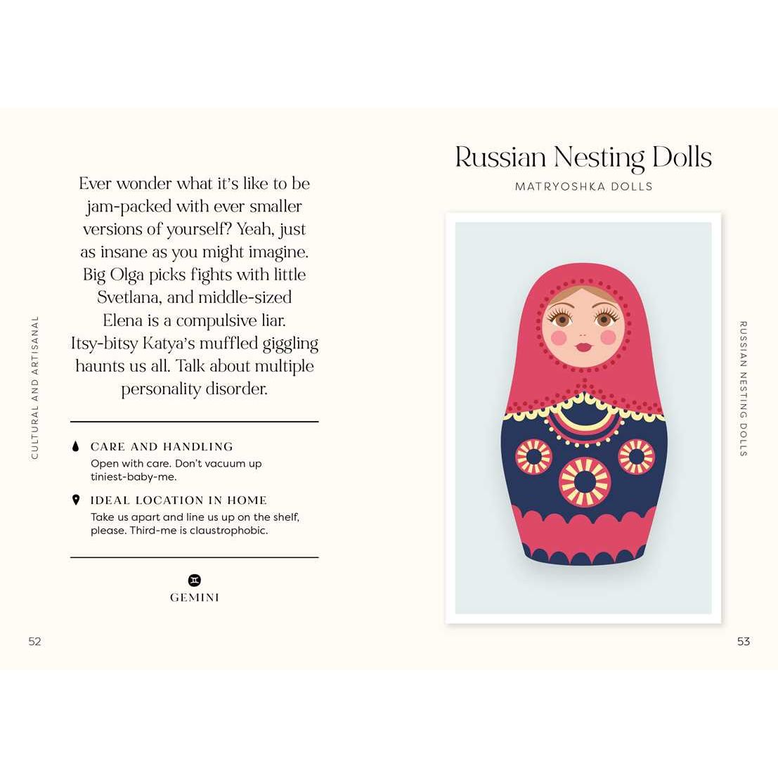 Discover what your favorite trinkets really think of you—in this wickedly funny illustrated gift book. Ever wonder if your ceramic Buddha is silently judging your life choices? Or if your antique compass is dizzy from your lack of direction? In Tchotchkes and Their F*cked-Up Thoughts, your quirky collectibles finally speak their minds—and they are brutally honest. This hilarious and highly giftable book brings together dark humor, colorful art, and a dash of existential dread. Perfect for collectors, design lovers, and fans of sarcastic humor, this is a must-have for anyone with a shelf full of curios and a dark sense of humor.