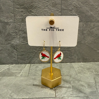 Painted Cardinal Oval Earrings