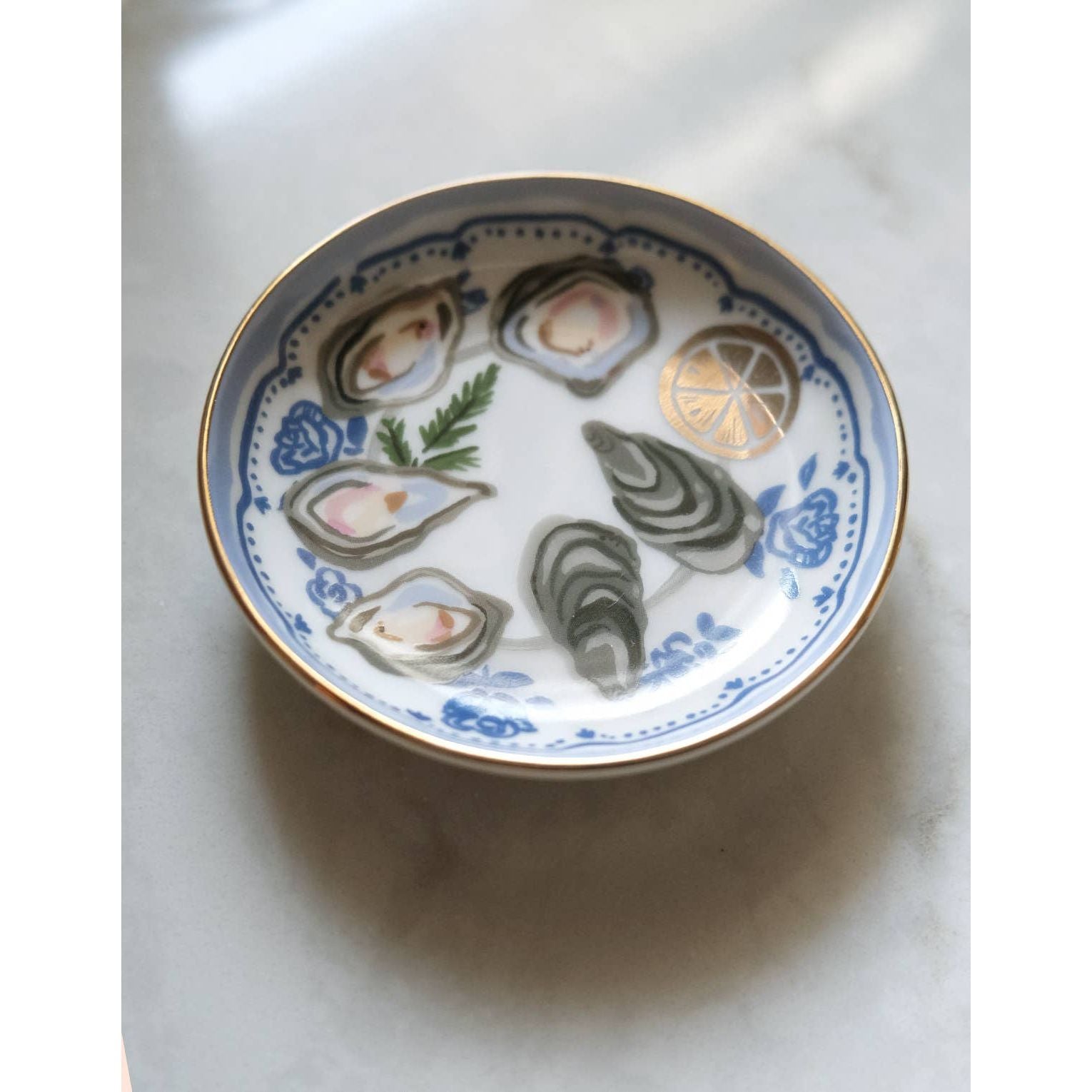 A fan favorite giftable–Our ceramic trinket dishes are the perfect catchall for your nightstand or dresser. White porcelain is adorned with our colorful, hand-painted designs, and we lined the edge in 10k gold for added flair.