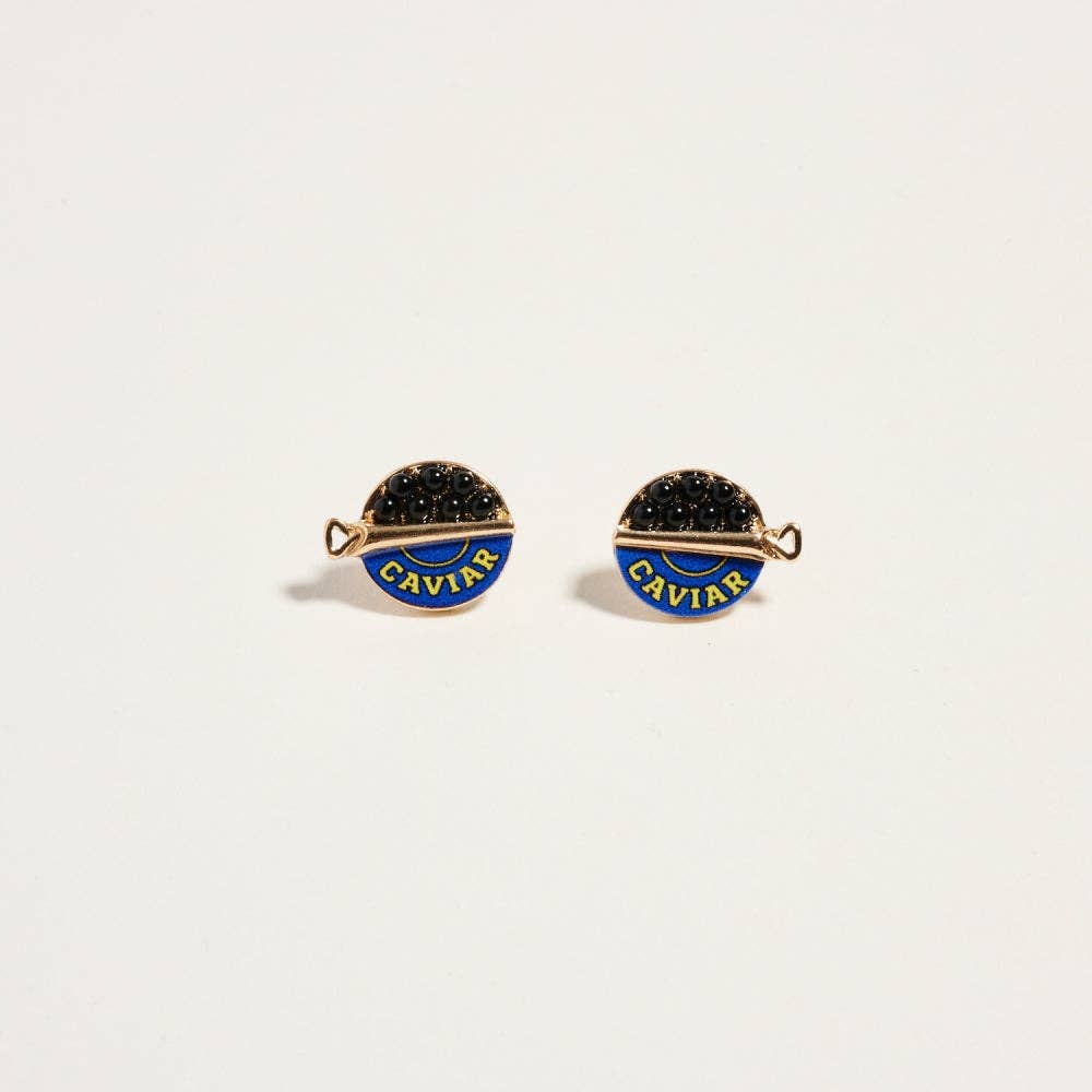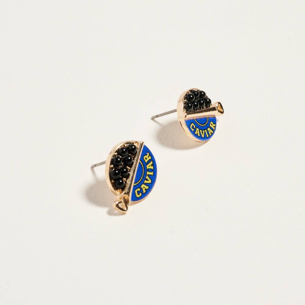 This earring style showcases a tiny open caviar can accented with bead details for a realistic look. The compact 0.5 inch size keeps them playful yet wearable.