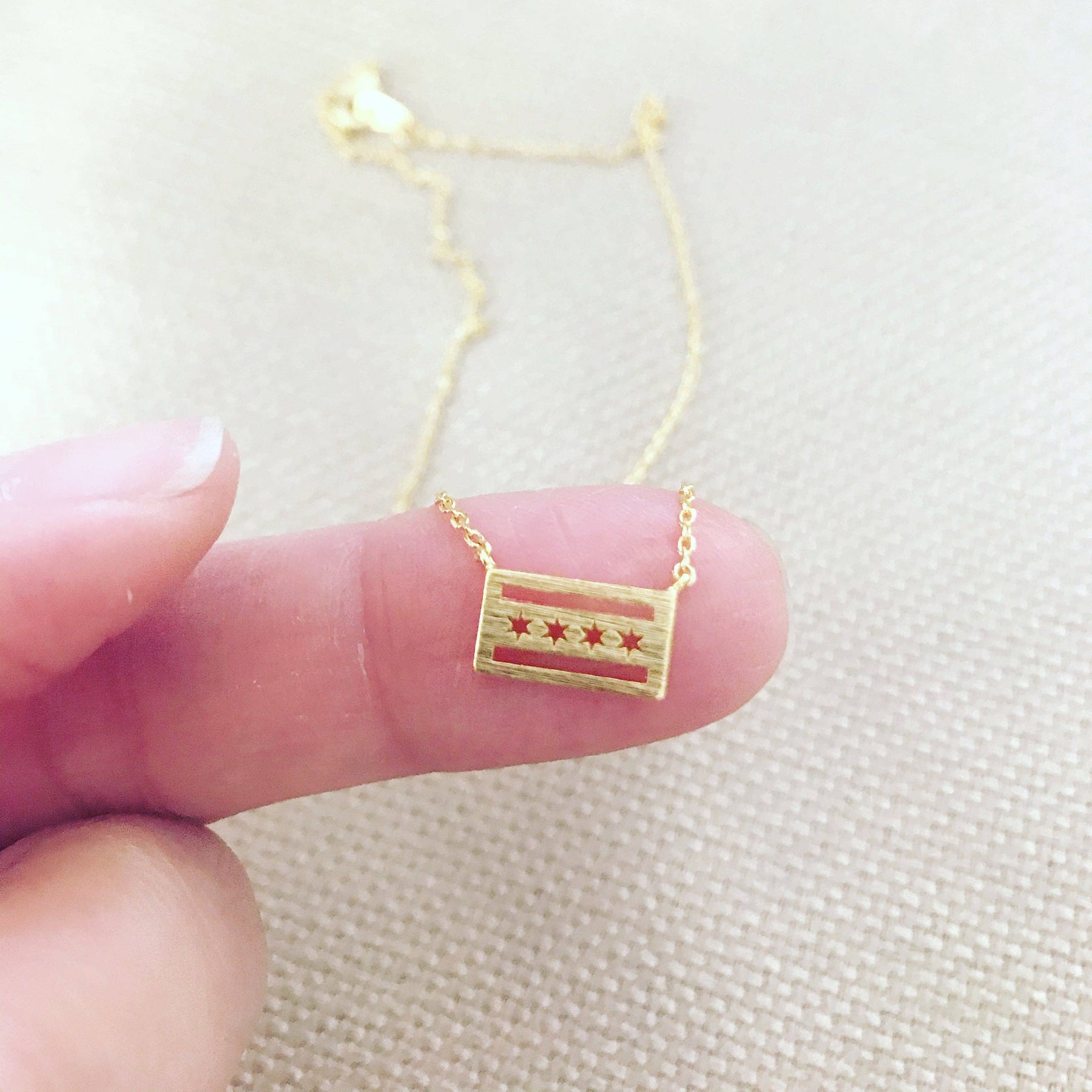 This mini Chicago flag pendant necklace offers a clean, minimalist design that captures the iconic city symbol in a compact size. Perfect for everyday wear, it adds a subtle nod to Chicago pride while maintaining a simple and elegant look.