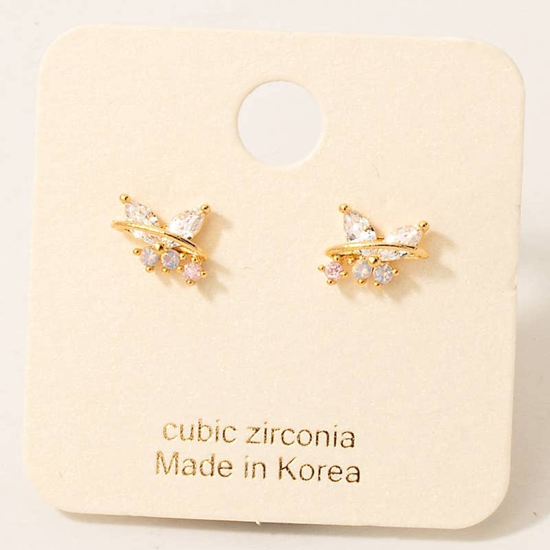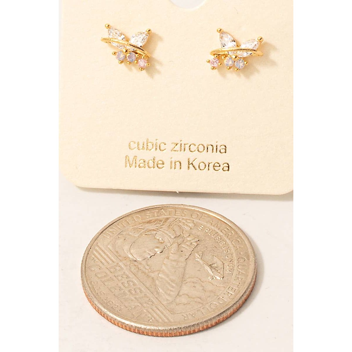 This pair of stud earrings showcases a timeless cz studded butterfly halo style.