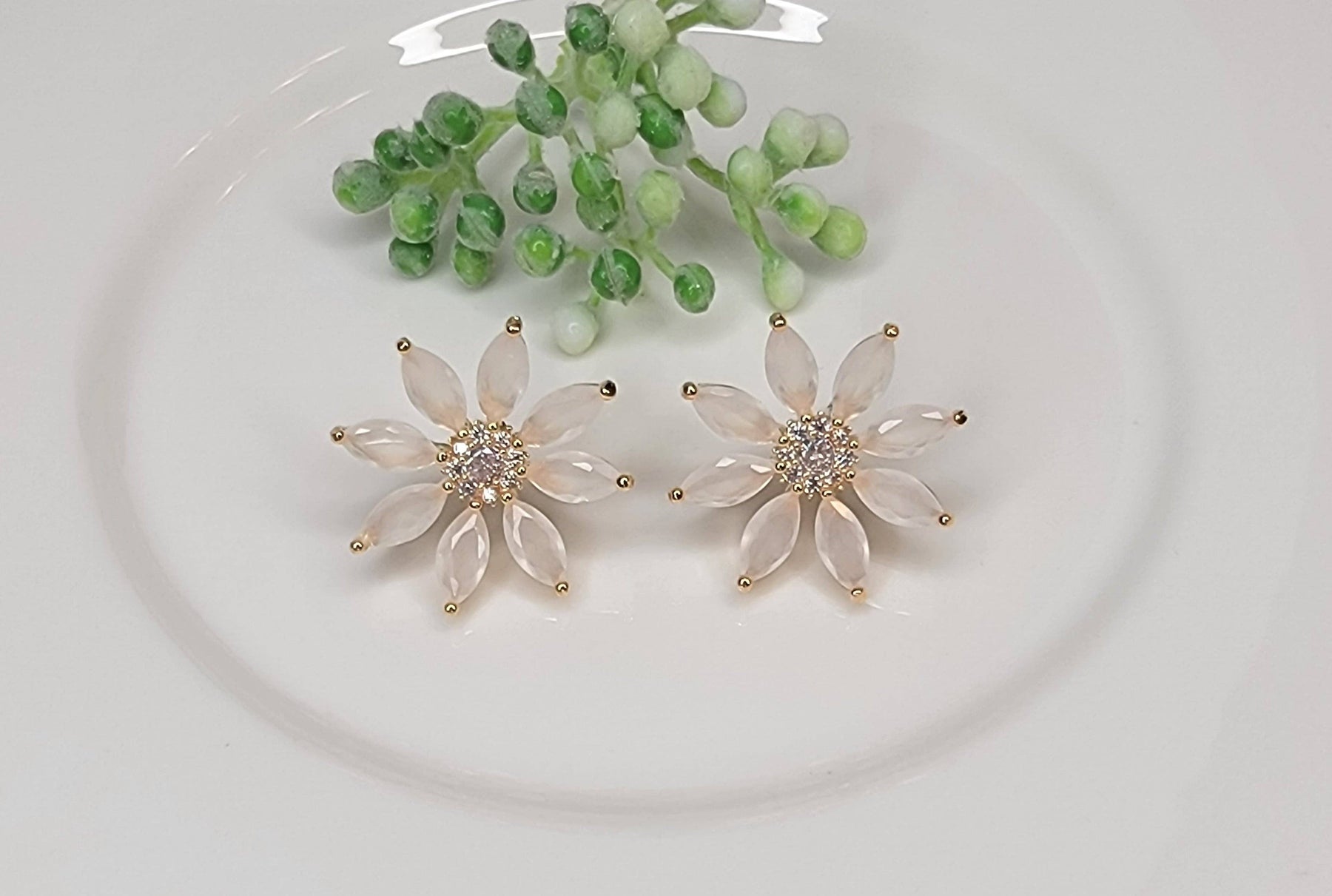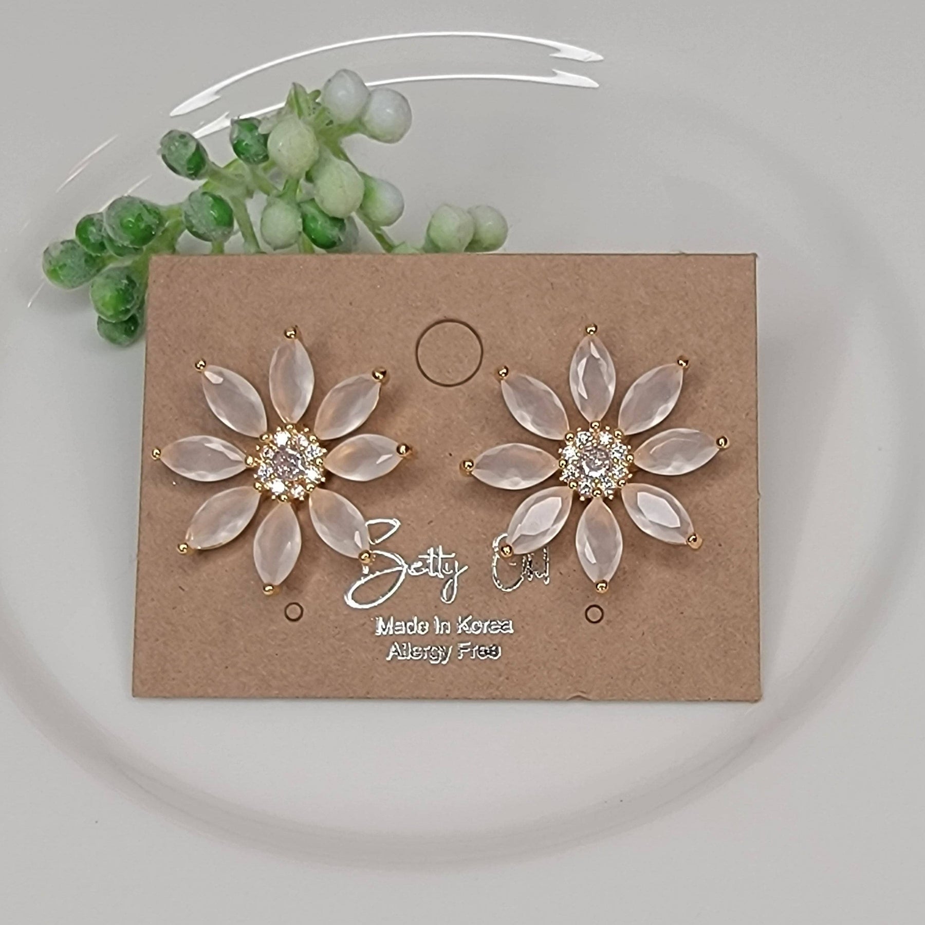 Cz with Glass Post Earrings. Material: the titanium post, cubic zirconia, glass, lead & nickel free. Length: 7/8" Width: 7/8"