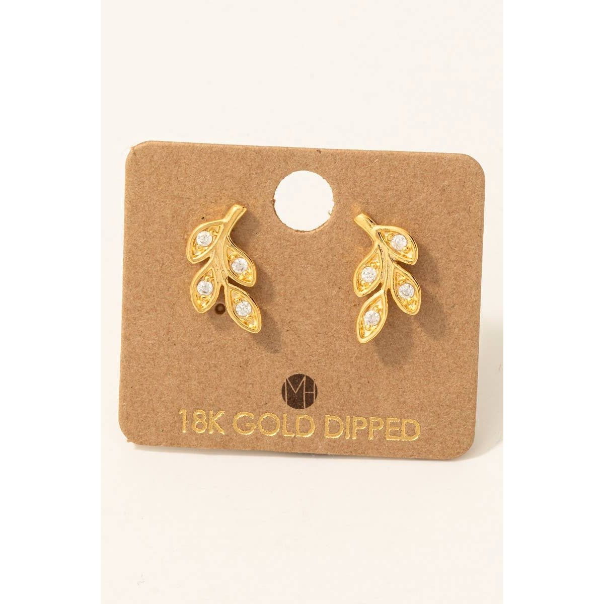 This pair of stud earrings introduces a unique gold dipped cubic zirconia leaves style.