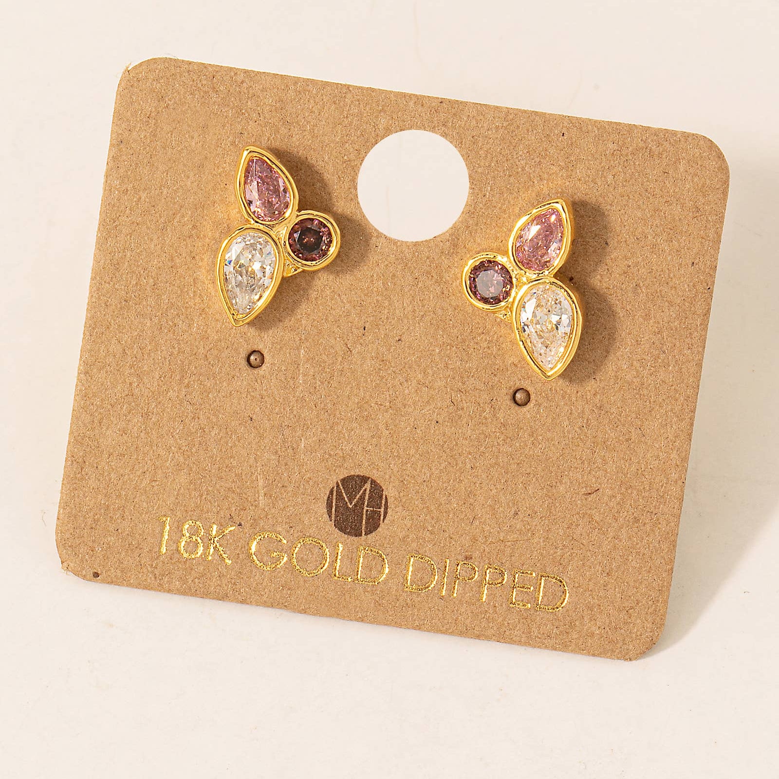 Gold Dipped Mini Cz Cluster Stud Earrings