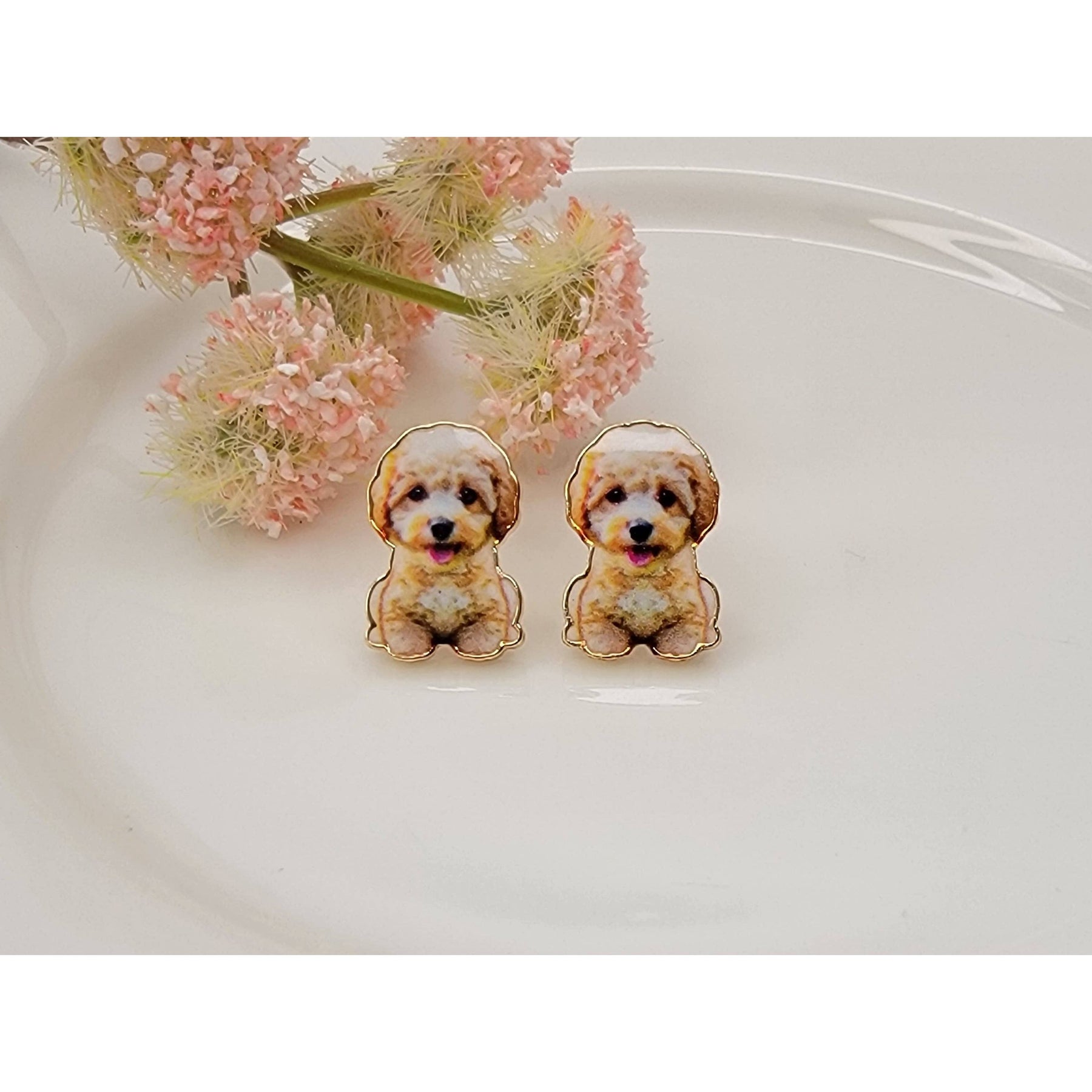 golden poodle post earrings