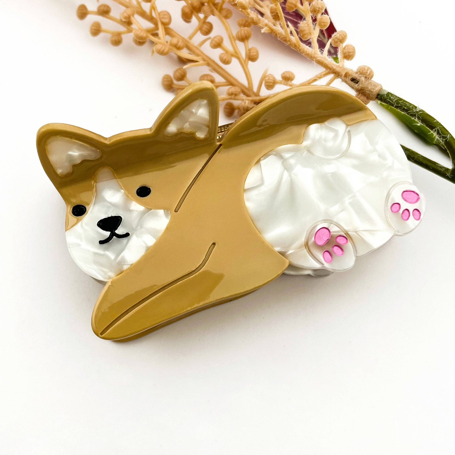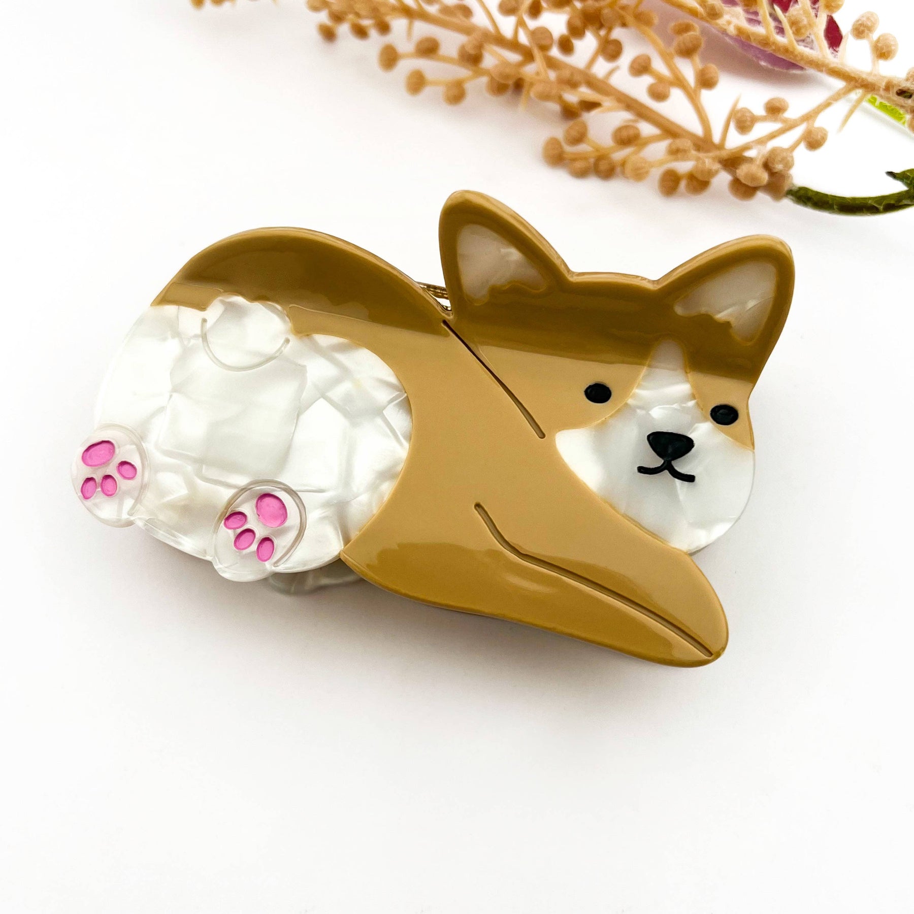 Playful Corgi Acetate Hair Claw Clip