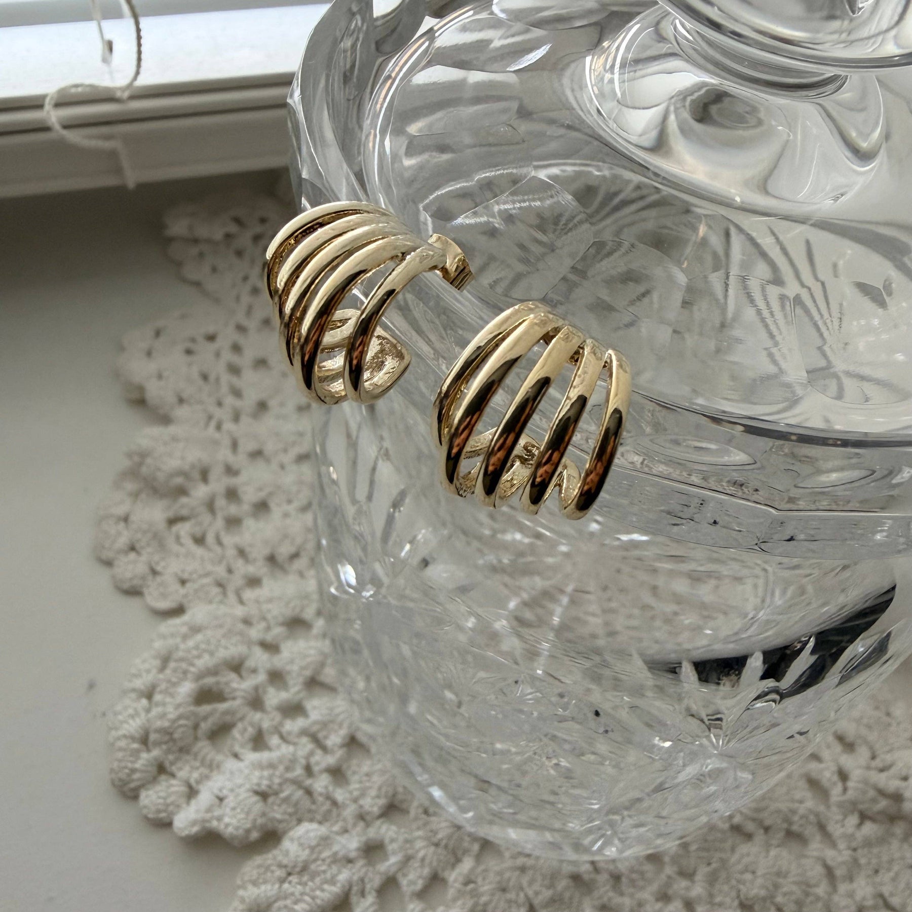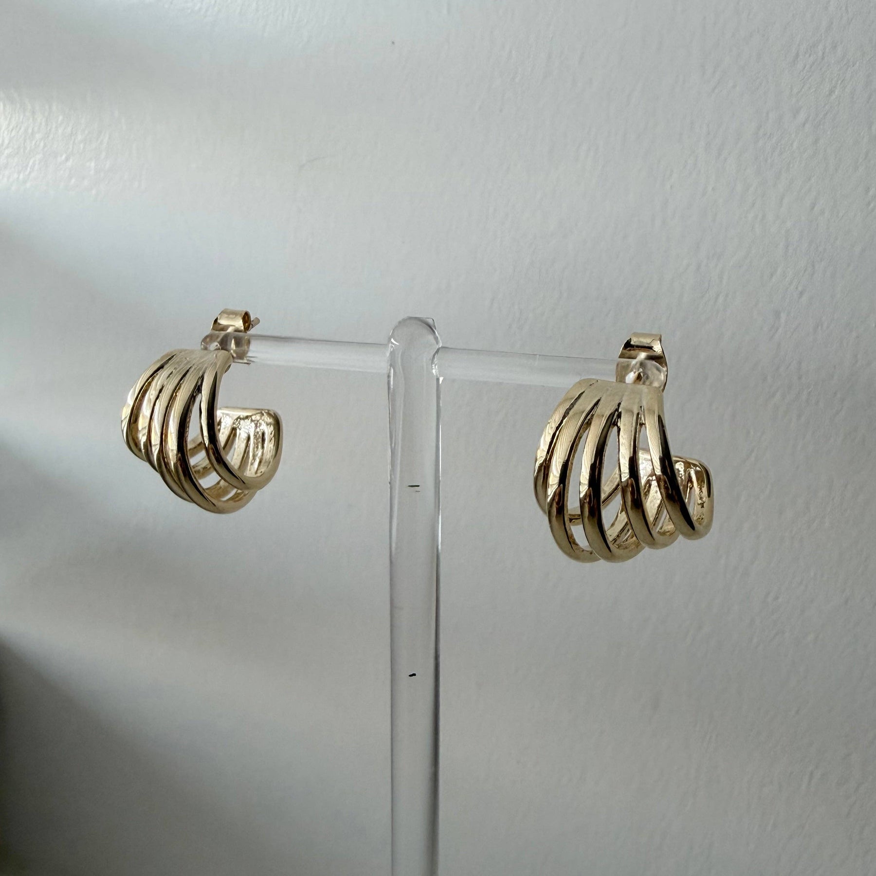Make a statement with the sculptural elegance of the Five Tier Hoop Earrings. Featuring five layered arcs that create depth and shine from every angle, these hoops bring a modern, dimensional twist to the classic silhouette. Compact in size yet bold in presence, this is perfect for elevating any look.