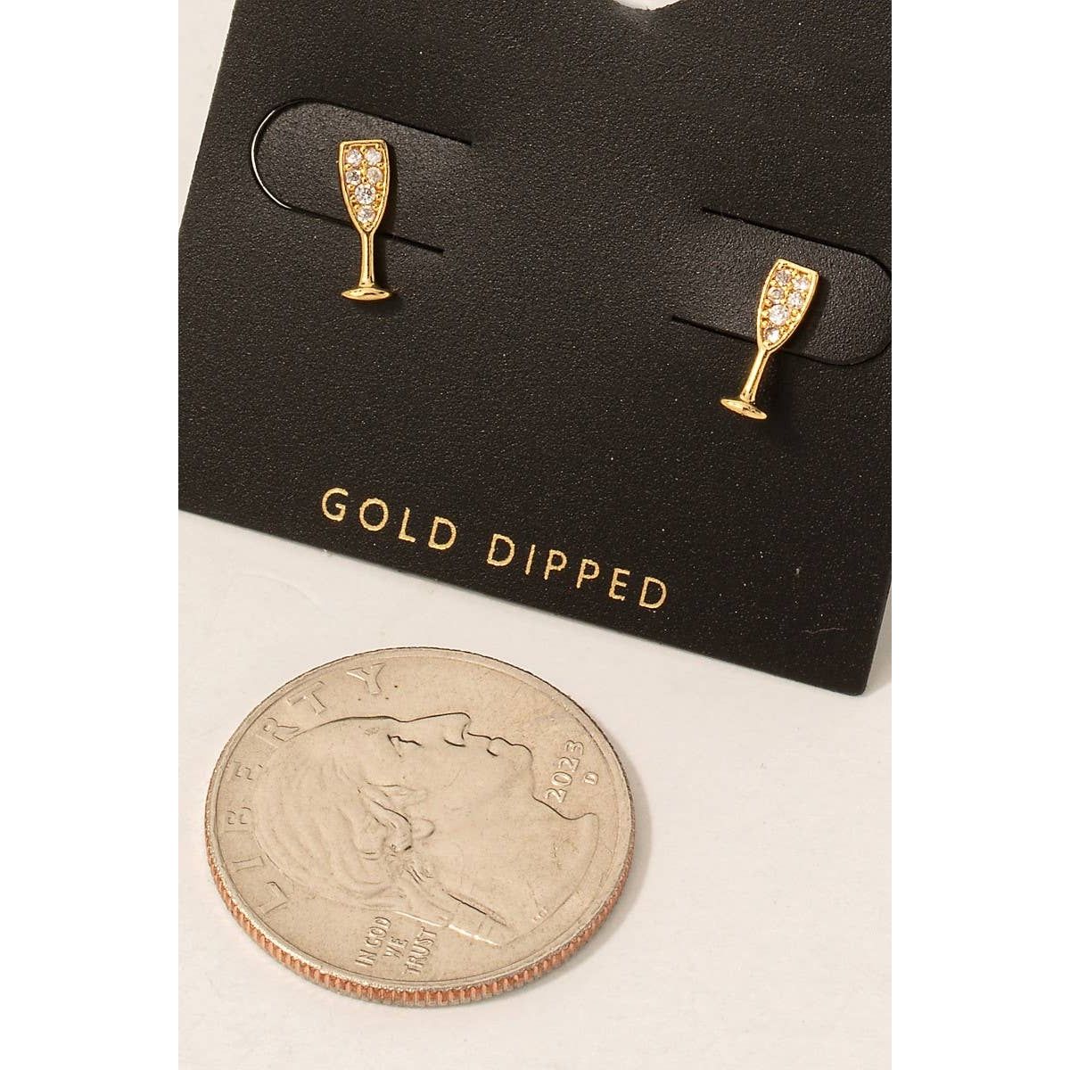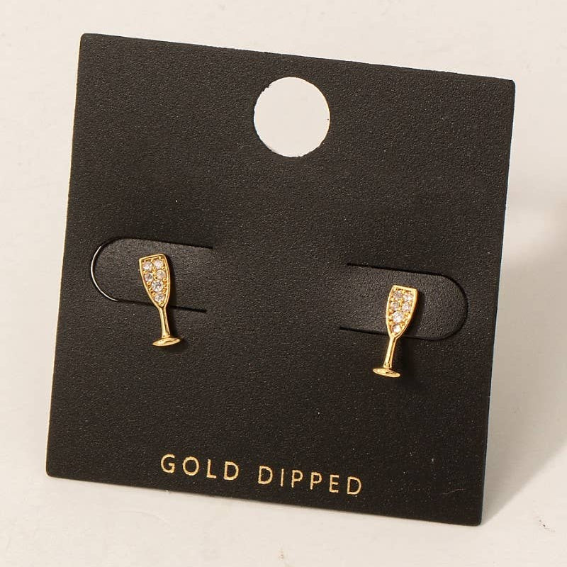 This pair of stud earrings adds a modern gold dipped cz pave champagne glass style.