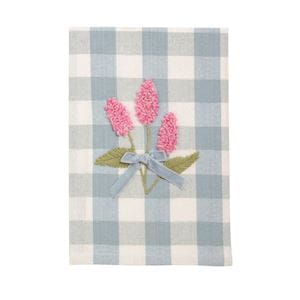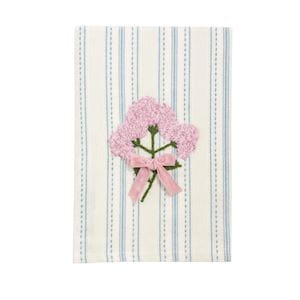 Embroidered cotton hand towel with dimensional velvet bow.