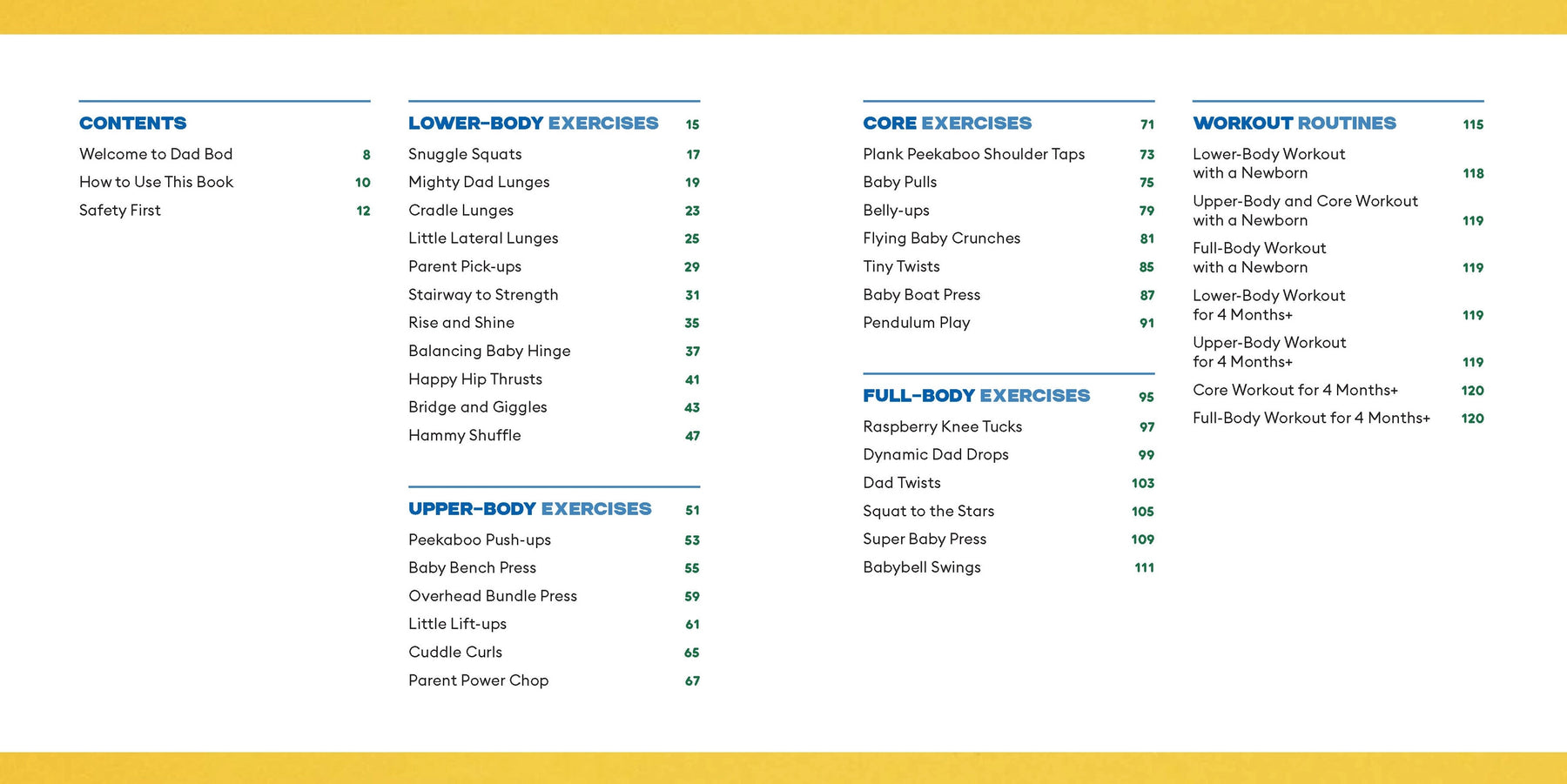 Strengthen your muscles and bond with your newborn! Redefine the meaning of dad bod with this fun book that shows you how to bring your baby along on your fitness journey with easy exercises and routines. Stay fit without sacrificing time with your little one. Filled with 30 playful and effective exercises that you can do at home with a baby up to one year old, this guide makes it easy to include your infant in your workouts—and your baby will love the attention, movement, and stimulation, too! Illustrations and step-by-step instructions demonstrate the practices, including lower-body, upper-body, core, and full-body moves: * Snuggle Squats * Overhead Bundle Press * Tiny Twists * Plank Peekaboo Shoulder Taps * Raspberry Knee Tucks * Babybell Swings * And many more! Full routines, warm-up tips, and ideas for engaging your baby ensure you have everything you need to bulk up those biceps and augment those abs while also connecting and spending time with your child.