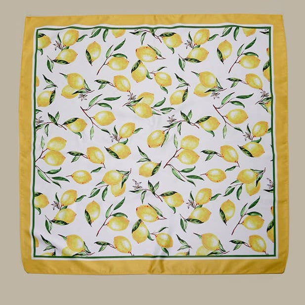 A beautiful design of lemon, silky feel bandana scarf. This will be perfect on puff hem dress or maxi dress.