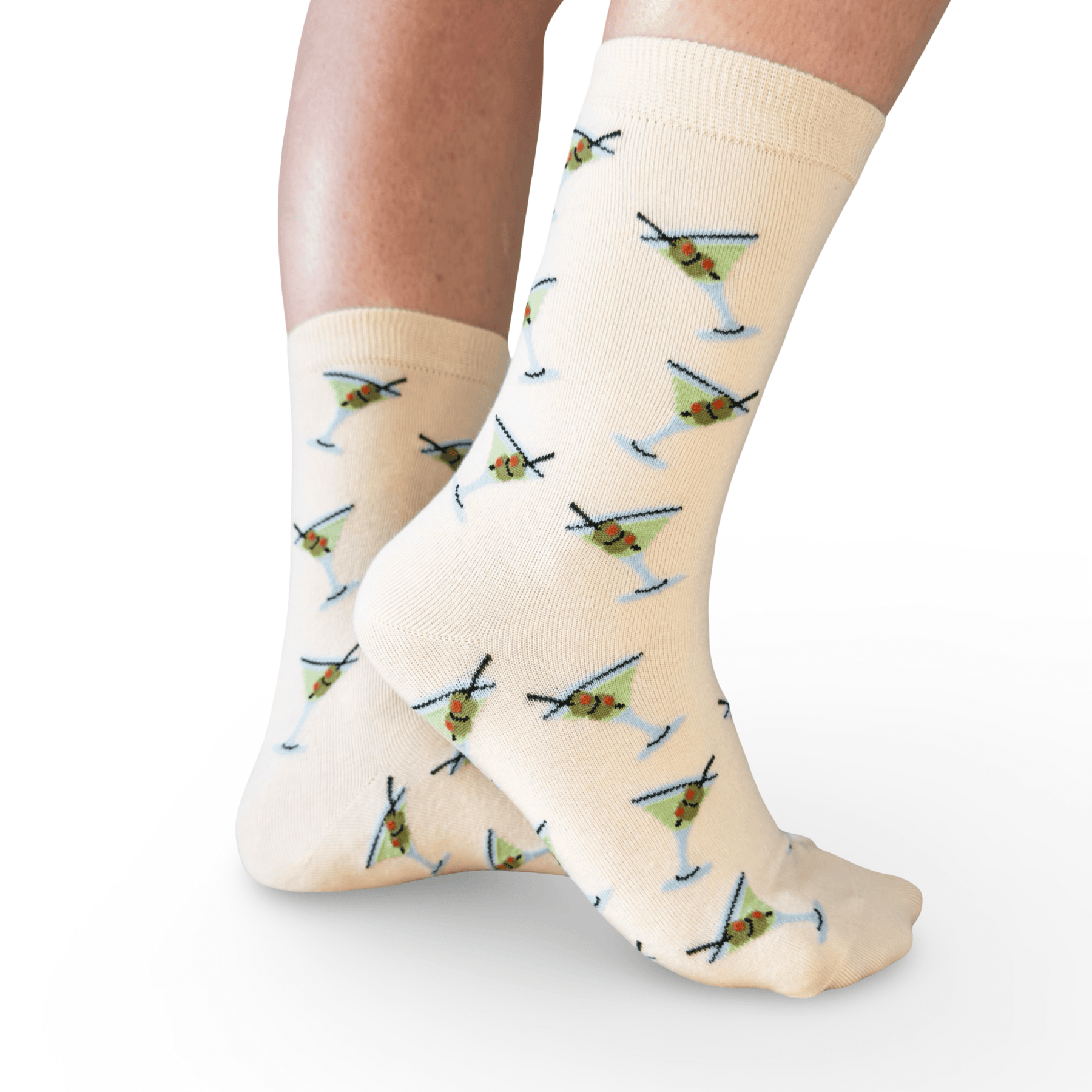 Raise a glass with our Martini Crew Socks! These cream-colored cuties are covered in tiny martini glasses for a cheeky, cocktail-inspired look. Soft, stretchy, and made to fit most, they’re cozy enough for lounging but bold enough to show off. A fun gift for cocktail lovers and anyone who enjoys playful accessories.