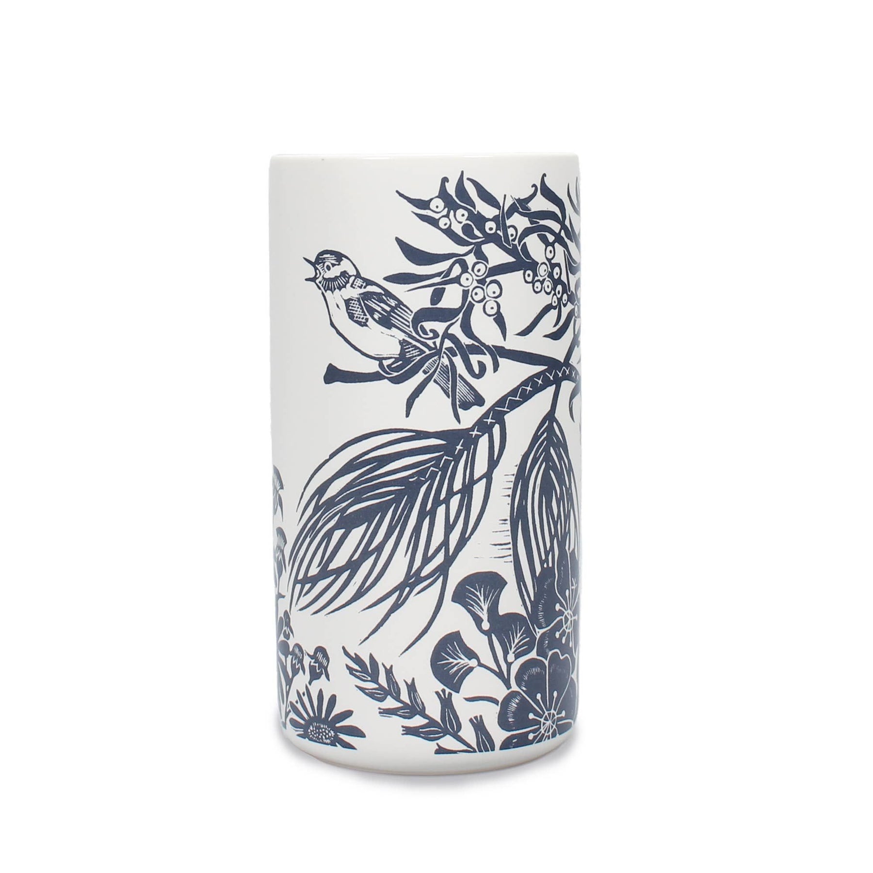 Bring the serene elegance of the forest into your home with the Kate Heiss 'Woodland' navy ceramic vase. With its rich navy hue and beautifully intricate woodland-inspired design, this vase embodies the beauty of nature through the eyes of a talented artisan. Perfect for adding a touch of sophisticated tranquility to any room, it is a true statement piece.