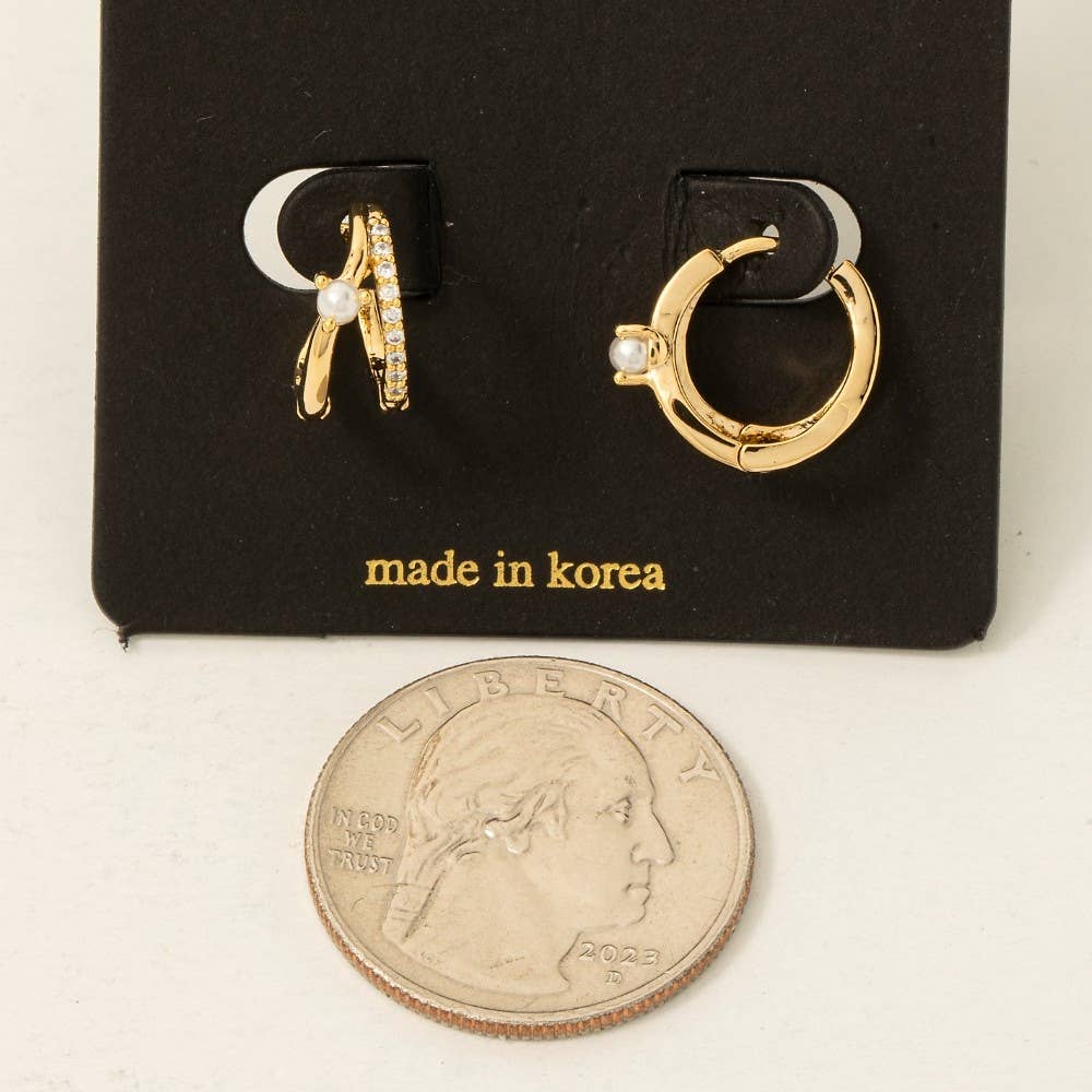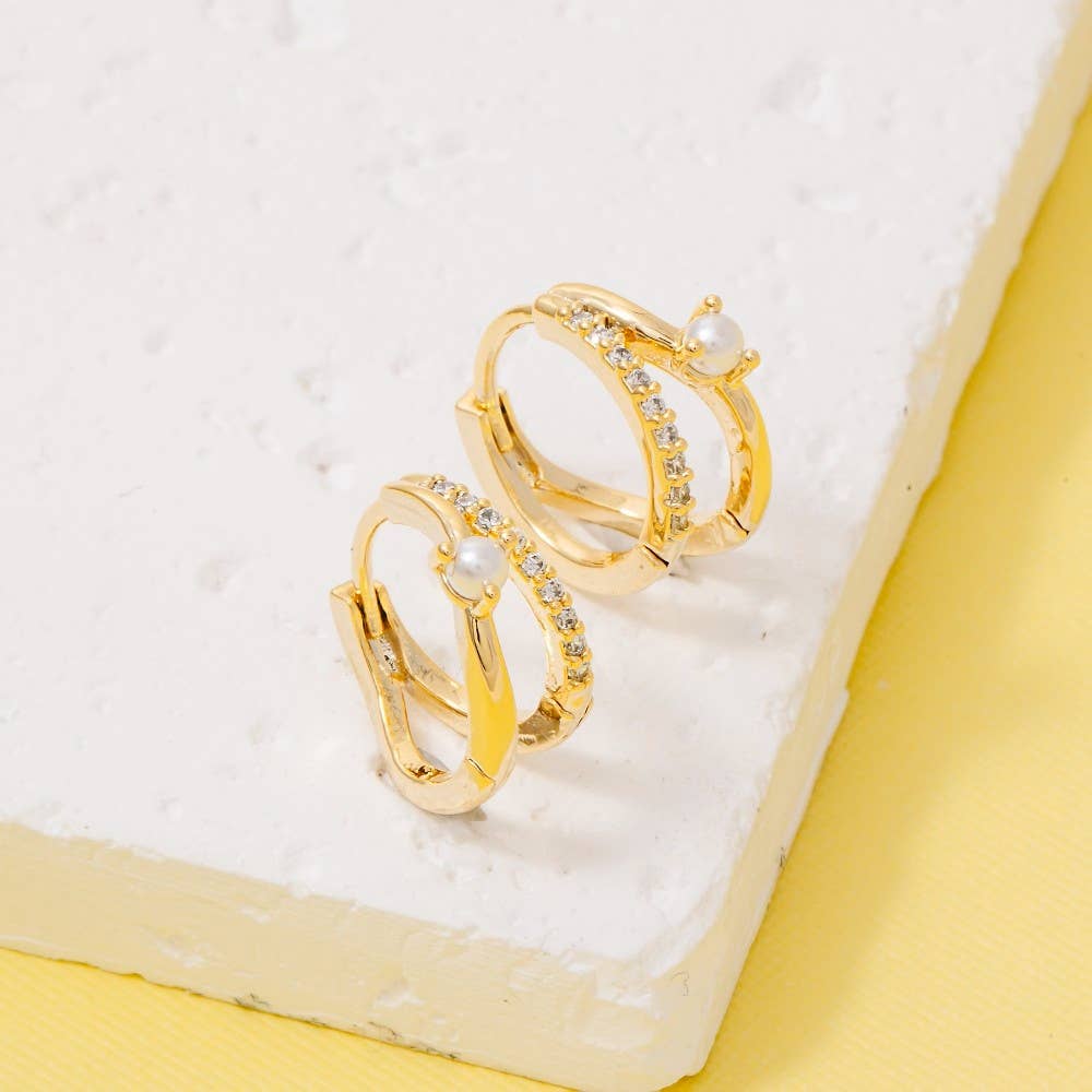 This pair of hoop earrings features a fashionable mini pearl double row style.